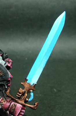 Cette technique est simple sur les épées, mais elle peut aussi s’appliquer à d’autres styles de lames comme les hallebardes, les marteaux ou des armes de formes plus exotiques. Il est bien sûr possible de réaliser ce tutoriel en ayant recours à d’autres couleurs comme du rouge ou du vert.