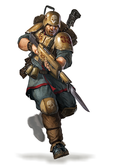Comme tout régiment en provenance de Konig, le 33ème est ultra mécanisé. Il est composé de Vétérans aguerris ayant vaillamment combattu sur de nombreux champs de bataille et habitués aux combats difficiles en zone urbaine. Le jaune moutarde de leurs protections est un hommage commémoratif aux sacrifiés du désert de Banna. Ce régiment est souvent cité pour ses actes héroïques, ce qui en fait un régiment très apprécié de ses alliés. Cependant, depuis la méprisable trahison des Eldars durant la campagne d’Utoya, le 33ème souffre d’une certaine xénophobie. Cette méfiance envers les Xenos a pour conséquence le refus du régiment de côtoyer des Abhumains. A cela s’ajoute une totale incompréhension de leur comportement. Ainsi, il est inconcevable pour un soldat de Konig qu’un Ogryn ait peur de monter dans une Chimère. A cause de la suspicion latente, des Commissaires ont été affiliés à ce régiment, non pour y faire respecter la discipline ou renforcer sa foi en l’Empereur, mais pour éviter les rixes lors de campagnes où des Abhumains combattent dans son camp. Malgré tout, en dépit de leurs tendances paranoïaques et d’une rusticité apparente, les soldats du 33ème régiment de Konig sont un exemple dont prennent modèle bien des régiments d’autres mondes.