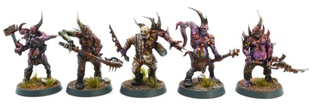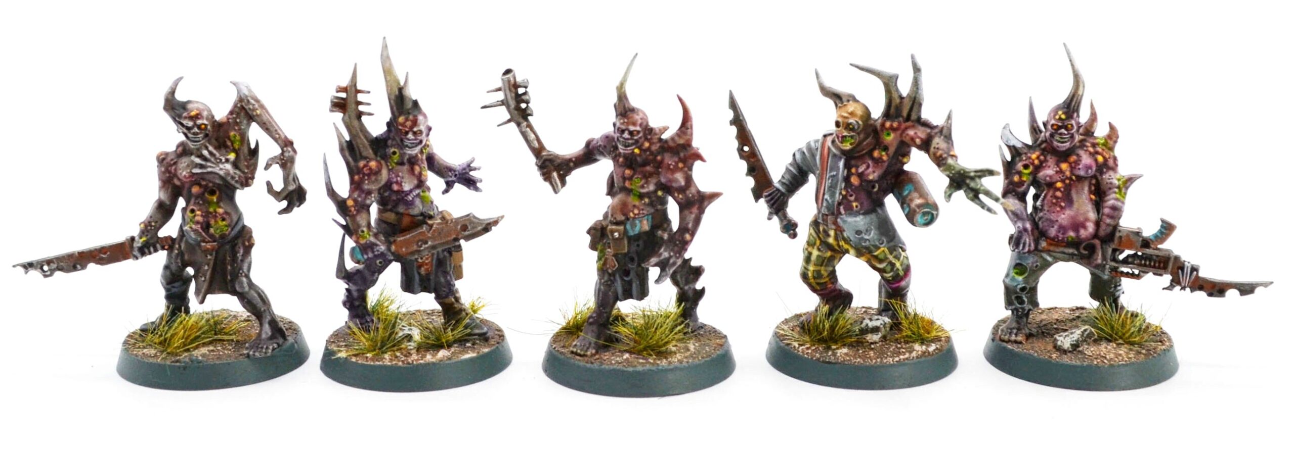 Dans notre dernier article, nous avions présenté la Combat Patrol de Typhus, qui comprenait 30 Véroleux. Nous avons souhaité agrandir la famille de ces doux citoyens corrompus en leur ajoutant 10 nouveaux compagnons, portant ainsi l’effectif total à 40 Véroleux. Les voici donc, parés de leurs plus beaux habits!