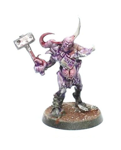 Ces nuances apportent un contraste intéressant avec les tons chair et organiques du reste de la figurine, tout en gardant une ambiance sale et corrodée typique des serviteurs de Nurgle.