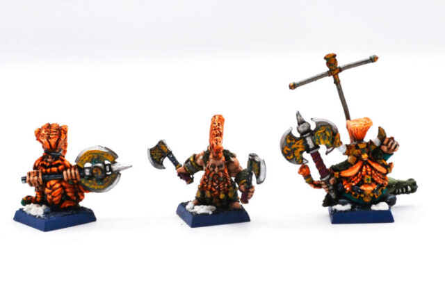 Aujourd’hui, nous vous proposons un petit article du maître des rancunes, condensé en nombre de figurines, certes, mais mettant à l’honneur trois pièces absolument iconiques de la gamme des Tueurs nains.