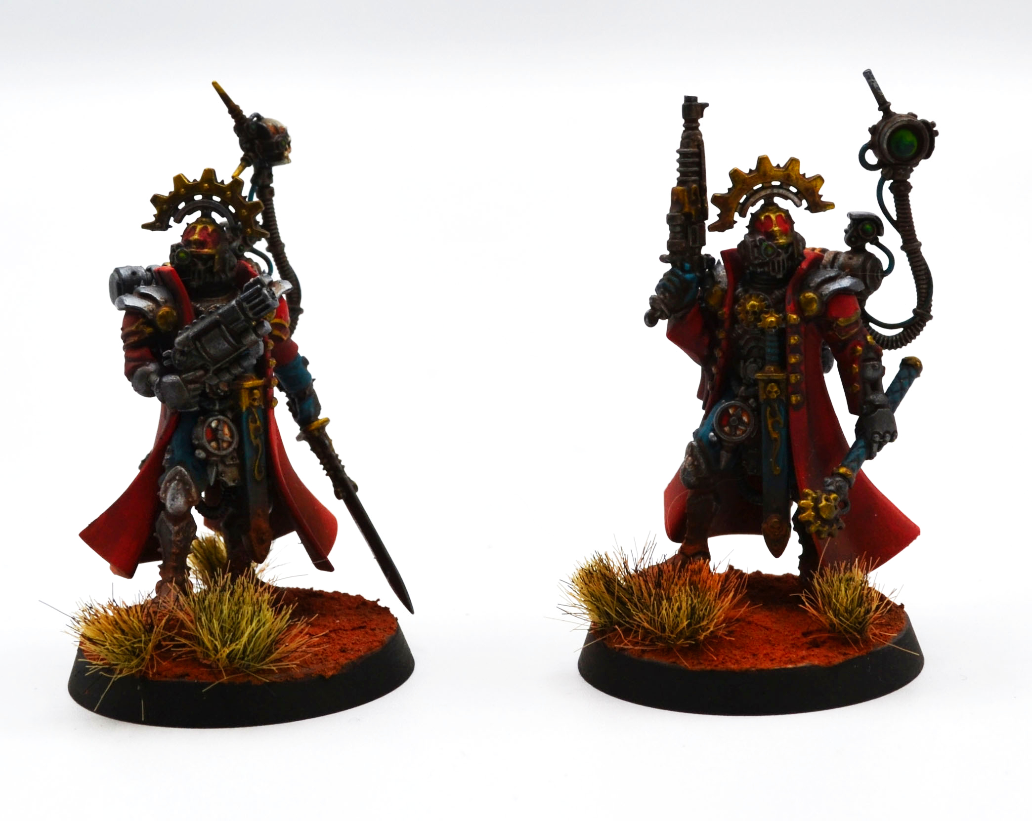 Nous poursuivons aujourd’hui la présentation de notre armée de l’Adeptus Mechanicus de Mars. Si les Skitarii ne sont pas encore montés ni peints, leurs deux meneurs, eux, sont déjà fin prêts. Sirjohntheho a réalisé la peinture ainsi que les conversions de ces figurines, et, tout comme le Technaugure présenté dans l’article précédent, ils arborent fièrement les couleurs martiennes. Ils ont également reçu leur dose de pigments et d’effets poussiéreux afin d’évoquer les étendues arides du désert rouge de Mars.