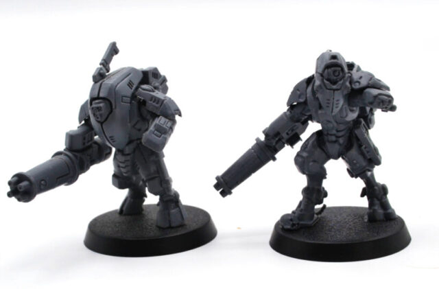 La peinture de ces unités est, bien sûr, prévue… un jour. Mais elles vont d’abord rejoindre la pile au trésor, des projets prioritaires devant être réalisés avant elles. Ce que nous pouvons déjà vous dire, c’est que nous peindrons les XV25 aux couleurs de l’Empire Farsight, estimant que le commandant renégat aurait davantage recours à des technologies plus anciennes. Quant aux XV26, elles seront peintes selon le schéma d’un autre sept Tau, probablement en lien avec la campagne de Taros.