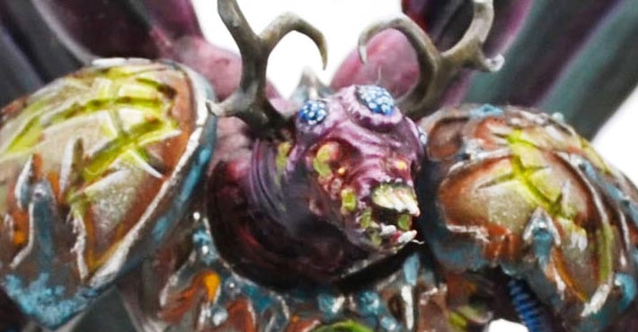 Pour cela, nous avons utilisé une tête de mouche de la Peste, que nous avons ornée de cornes prélevées sur un Porte-Peste. Cette combinaison, associée à la peinture de Sigur, donne au modèle une allure parfaite de Prince Démon volant dédié au Grand Immonde, même si nous aurions adoré pouvoir y ajouter des ailes de mouche!