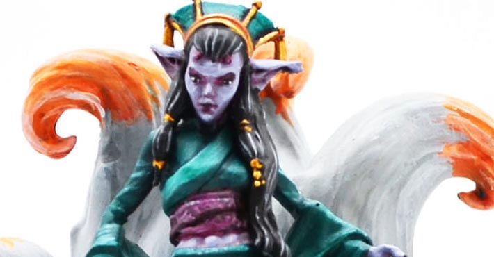 En attendant, voici le héros et général de notre armée de 1 000 points, une Kitsuné, capable d’apporter une puissance de frappe non négligeable, ainsi que la règle Formation Fluide, offrant une excellente mobilité tactique à son unité.