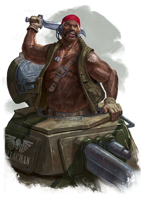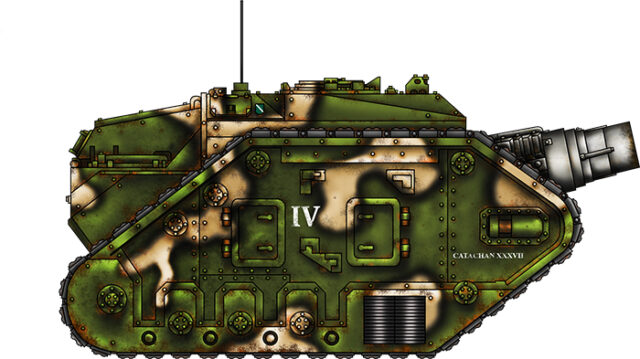 Le XXXVIIe régiment de Catachan fut levé début M41 afin de répondre au besoin croissant de forces blindées capables d’opérer efficacement sur des mondes-jungles et dans des environnements extrêmes. Composé exclusivement de natifs de Catachan, le régiment adapta rapidement les doctrines blindées impériales à sa culture martiale brutale et profondément pragmatique. Ses équipages modifièrent leurs chars pour affronter la végétation étouffante, la faune hostile et les engagements à très courte portée, déployant principalement des Leman Russ, Hellhounds et Chimera lourdement personnalisés.