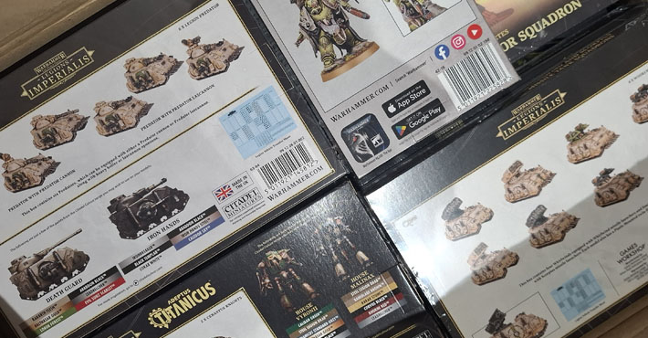 Nous avons également reçu un gros carton de figurines contenant l’intégralité de nos Chevaliers pour Legions Imperialis. L’objectif est de terminer leur montage afin de pouvoir ensuite nous attaquer à la peinture.