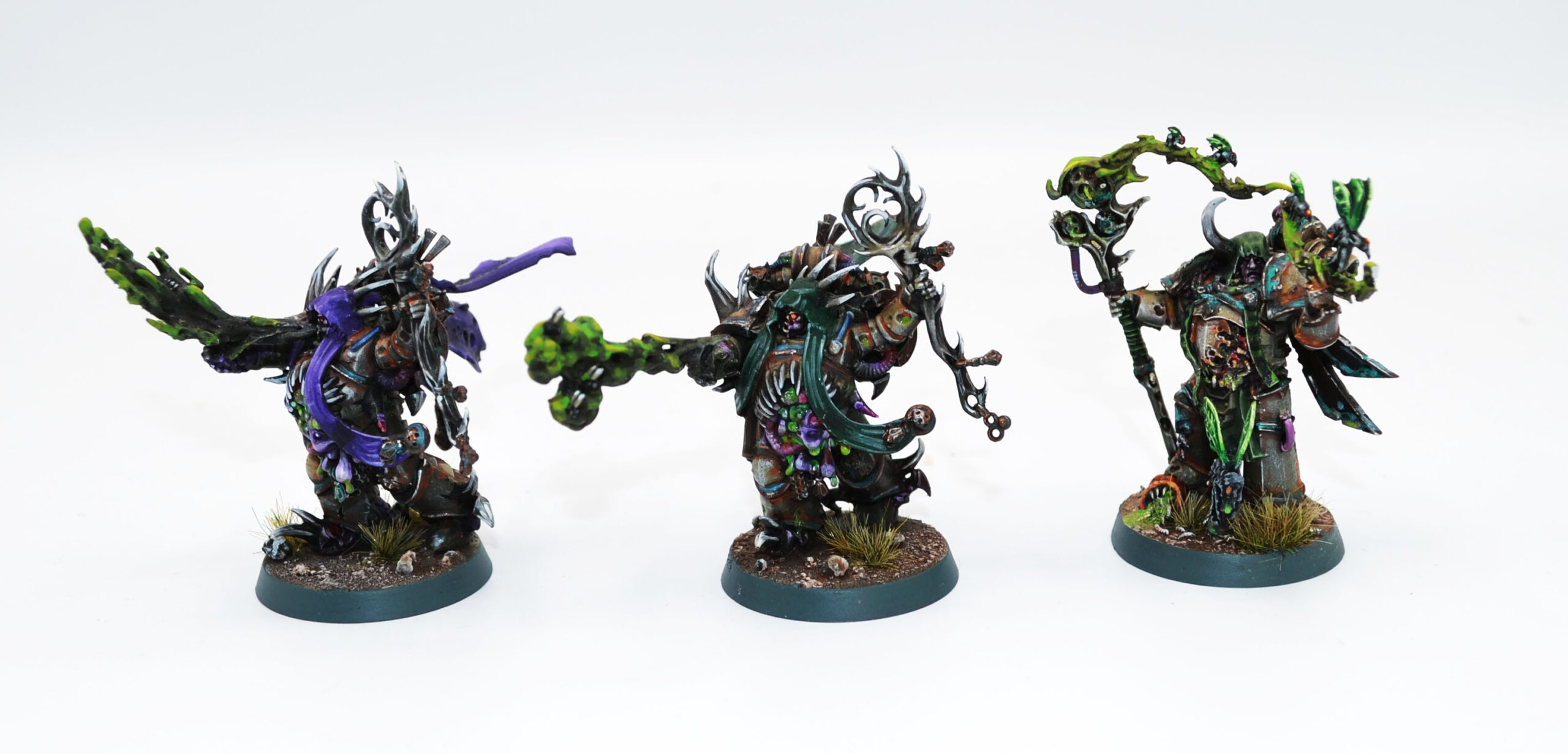 Les Apostles of Contagion, membres de la 4ᵉ Compagnie de la Peste de la Death Guard, sont spécialisés dans la propagation des miasmes et des contagions. Sous l’égide de Necrosius, cette cohorte s’est entourée d’une nuée d’Essaimeurs Répugnants ; il était donc logique d’en intégrer plusieurs à notre armée. Vous pouvez d’ailleurs en apprendre davantage sur les Apostles of Contagion dans l’article que nous leur avons consacré.