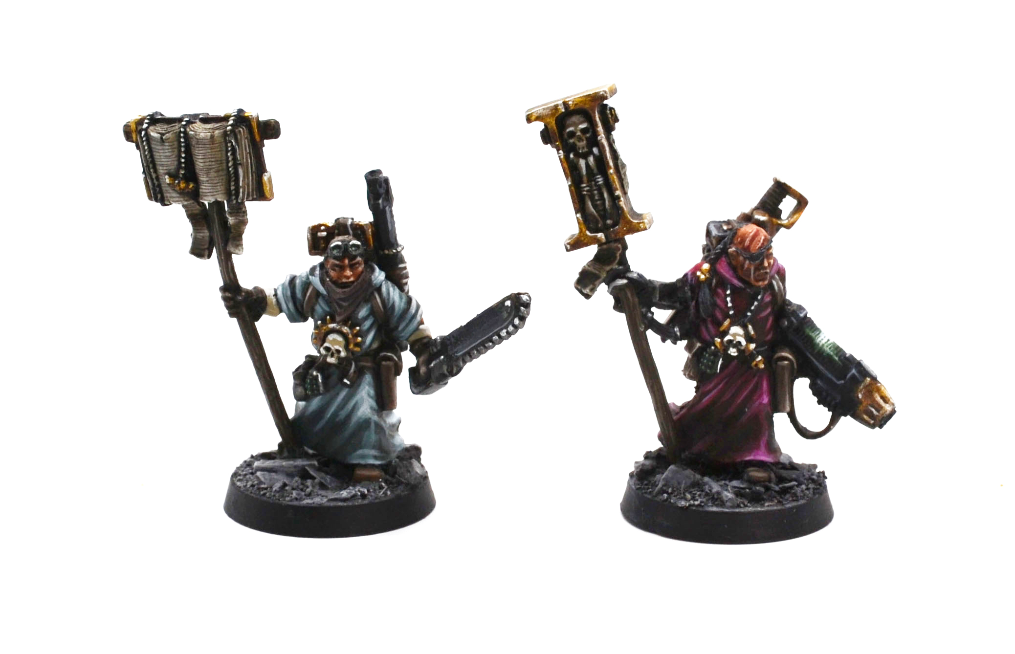 Aujourd’hui, nous revenons sur ces deux modèles de missionnaires qui ont traversé les âges. Tantôt utilisés comme personnages pour la Garde Impériale, tantôt comme escorte d’un Inquisiteur, ces figurines ont connu de nombreuses incarnations sur les tables de jeu. Faute de renouvellement de sculpture pendant longtemps.
