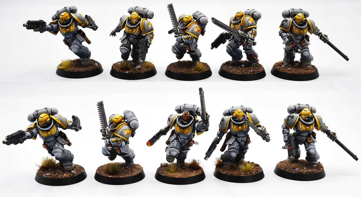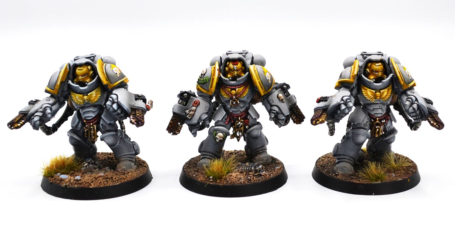 We’re back with the Imperial Harbingers, along with some freshly painted miniatures that you’ll discover throughout this article. As mentioned in our introduction article, we wanted a chapter that stands out from the ordinary, and the Imperial Harbingers fit that role perfectly. So here is an article reviewing our selection of miniatures, as well as the specific rules for the Boarding Patrol we’ve chosen for our upcoming Boarding Actions game.