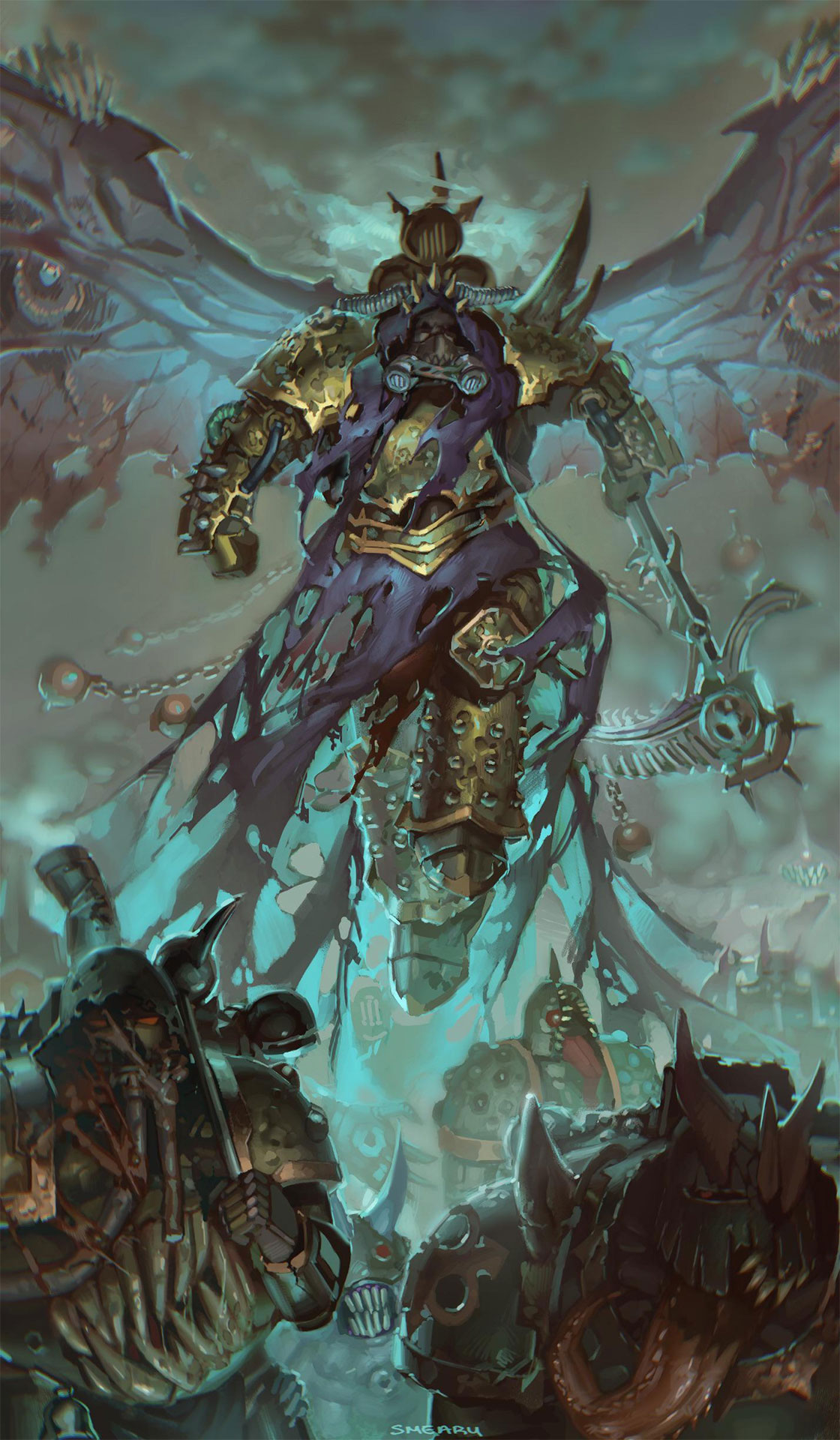 Mortarion, Primarch of the Death Guard, is the very embodiment of endured suffering, contempt for weakness, and the cold acceptance of death as a universal truth. A genetic son of the Emperor, he was cast through the Warp like his fellow Primarchs and landed on the cursed world of Barbarus, a poisoned planet shrouded in toxic mist where only the most monstrous could survive in the heights. Mortarion was not raised by men, but by one of the lords of death, an inhuman entity named Necare, who took him in as a curiosity and raised him as a weapon. A pale and sickly child, Mortarion learned war in darkness, hardening himself in a deadly environment where merely breathing could kill.
