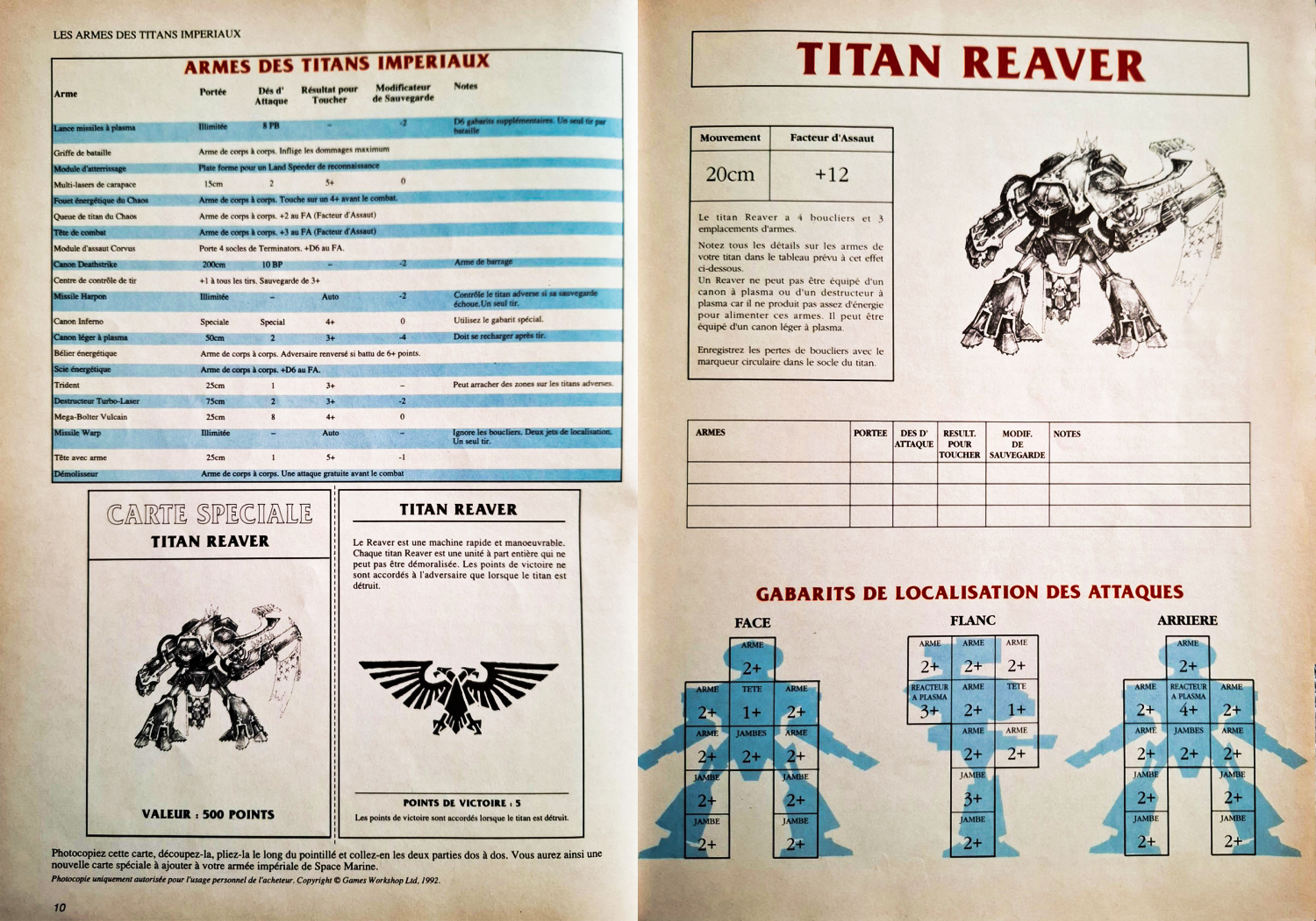 This article covers the complete rules for the Reaver Titan in Epic, including a breakdown of its weapons, damage locations, and the corresponding damage tables. One fun detail was that the damage varied depending on which part of the Titan was hit, explaining the presence of six separate damage tables described in the article.