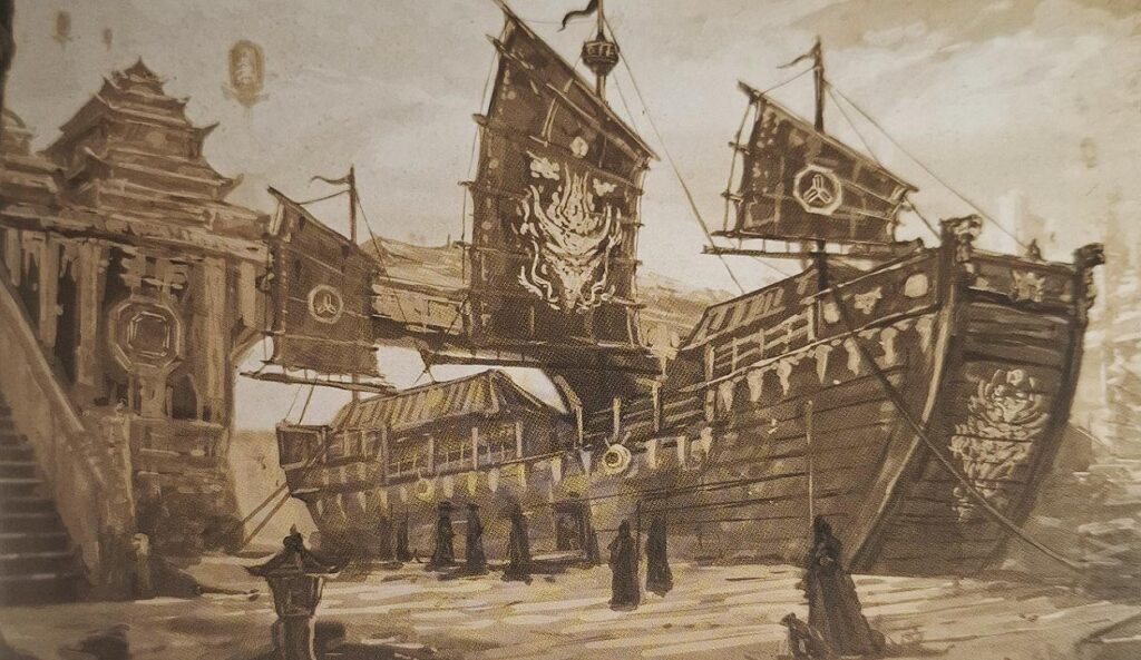 After crossing Grand Cathay, gathering her troops throughout the land, and awakening the terracotta sentinels, Miao Ying prepared her armada in the port of Fu-Hung before setting sail for Marienburg. The journey was calm for the most part, but as they neared the Sea of Claws, the forces of Chaos, clearly informed of the expedition, unleashed a rare and violent storm meant to disorient and destroy the Cathayan dragon’s fleet. However, Miao Ying, in her element, used her own magic to dispel the storm and continue her course. Sailing along the coasts of Reaver’s Point, the Grand Cathay army discovered shores ravaged by raids. During this advance, the Jade Fleet encountered a naval battle: a damaged Marienburger fleet was attempting to flee its assailants from the north. At the sight, Miao Ying deployed her Celestial Lanterns to aid the Imperial flotilla. The Chaos fleet was annihilated under a deluge of fire. Not wanting to leave any survivors who could provide Frydaal the Chainmaker with valuable information, Miao Ying completed her intervention with ruthless efficiency. The fleet ventured into the Manaansport Sea before finally docking in Marienburg, under the astonished gaze of onlookers, captivated by the splendor of the Grand Cathay army and the commanding presence of its leader. Meanwhile, the dark silhouette of Frydaal the Chainmaker made landfall at Hollum, wearing a wide grin. She was followed closely by a fleet of northern barbarians, whose ominous presence promised dark times ahead for the Westerlands.