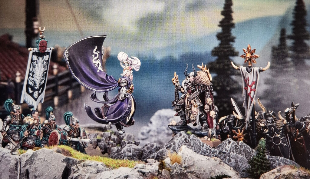 The Laurelorn Forest is not spared either, suffering from the growing influence of Chaos, with increased activity from the beastmen led by Kralmaw, the Prophet of Ruin. Only Cathay, thanks to the foresight and experience of the Celestial Dragons, remains clear-eyed in the face of the many signs heralding a massive Chaos invasion. Aware of the discord and disbelief among the other peoples, the Cathayan rulers decide to send Miao Ying at the head of a large contingent of warriors in order to supervise and unify a force capable of containing the coming invasion.
