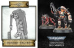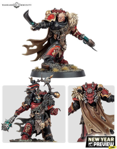 At first glance, we believe we are seeing a character in Cataphractii armor, judging by the shoulder pad visible in one of the images, more specifically, that of an Iron Warriors Forge Master. It remains to be determined whether this is a generic character or a named character.